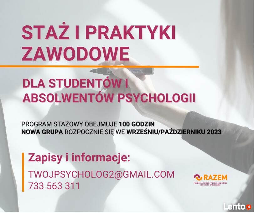 Zapraszamy studentów i absolwentów psychologii, którzy swoją przyszłość wiążą z pracą w obszarze szeroko rozumianej pomocy psychologicznej do udziału w nowej grupie stażowej, która rozpocznie się we wrześniu/ październiku 2023r.Cel praktyk: