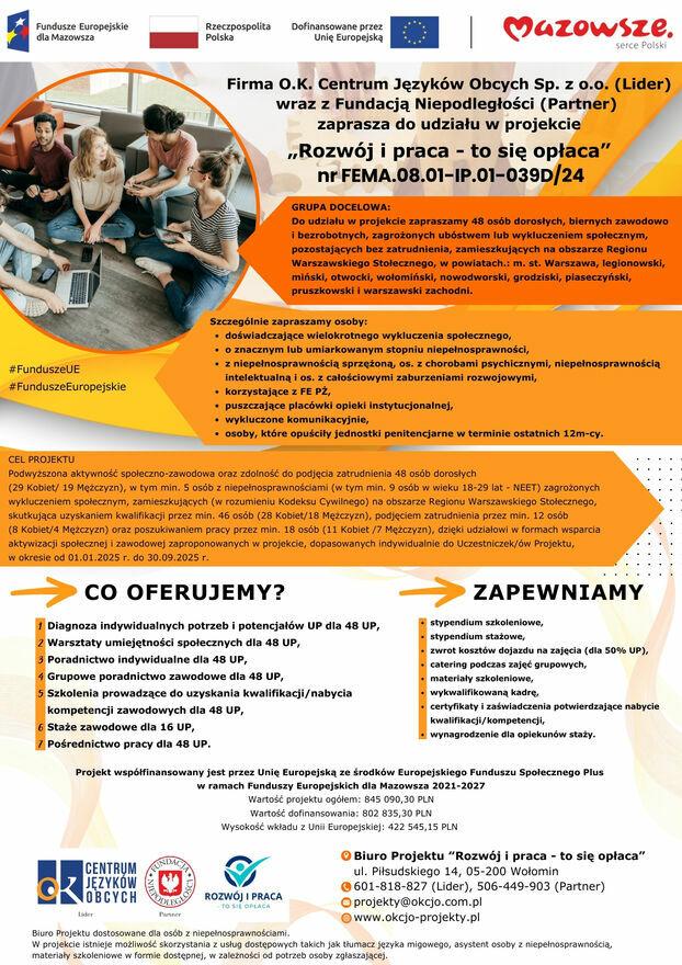 Firma O.K. Centrum Języków Obcych Sp. z o.o. (Lider)wraz z Fundacją Niepodległości (Partner)