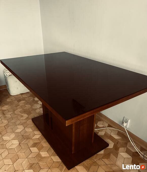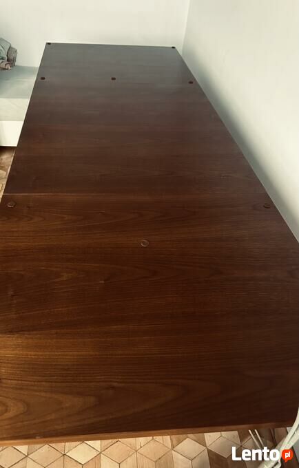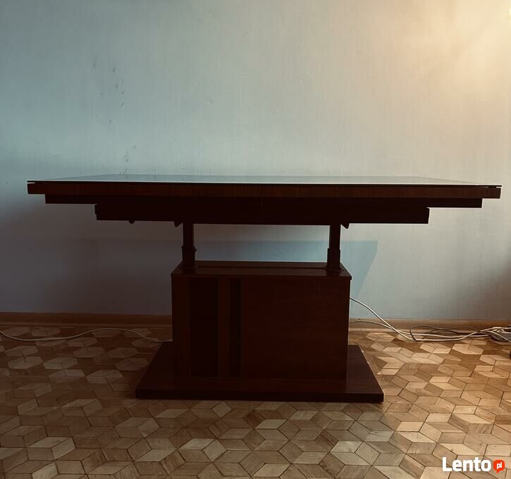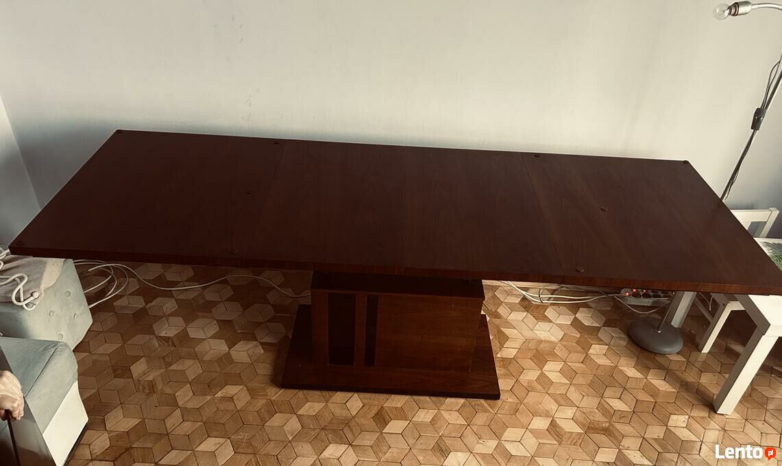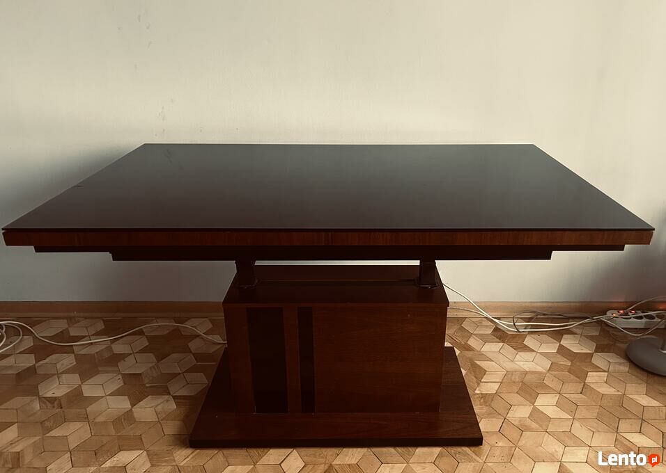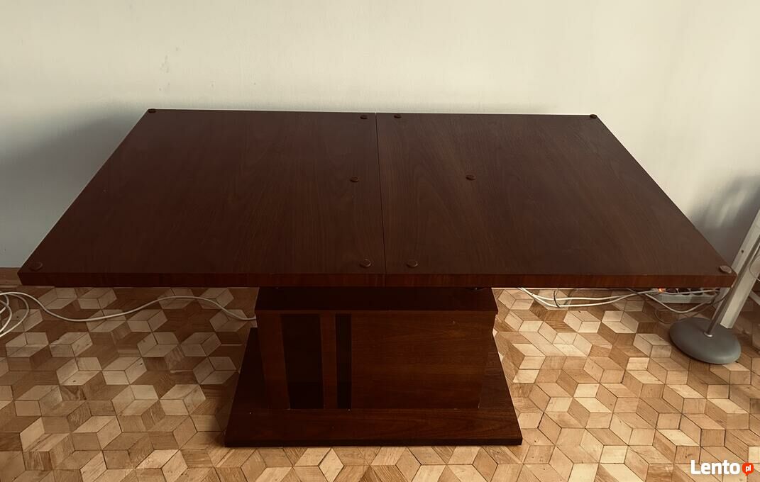 Stół drewniany w kolorze ciemnego brązuRozkładanym regulacja wysokości