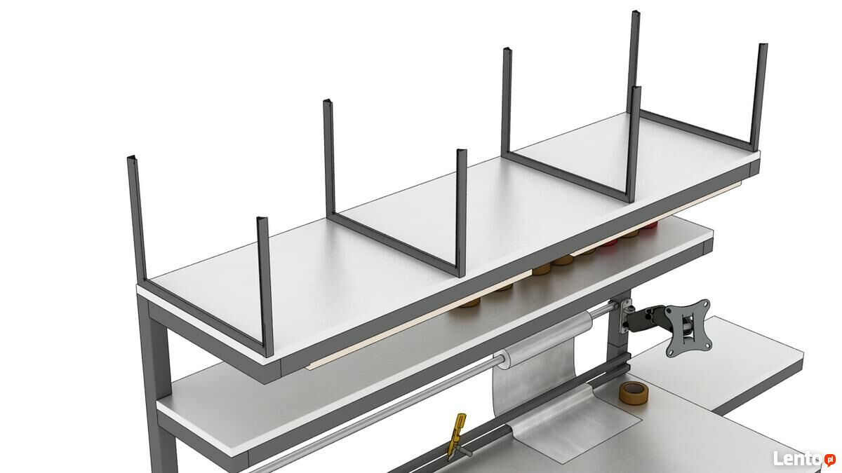 Mamy dużo wariantów stołów warsztatowych oraz dodatków jak wózki na kartony czy stoły do rolowania.