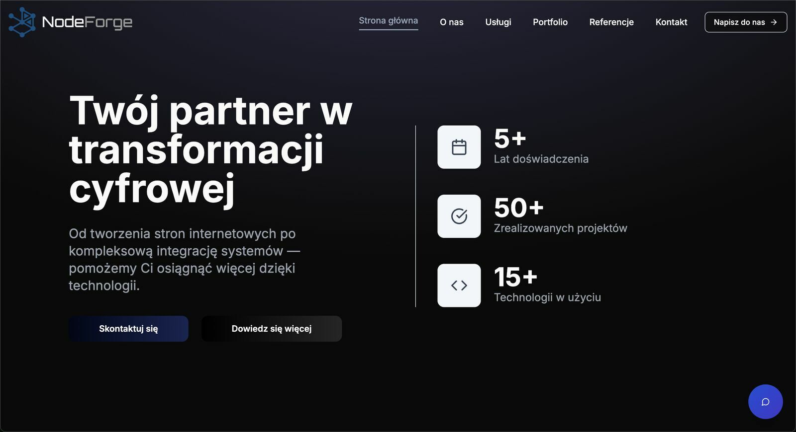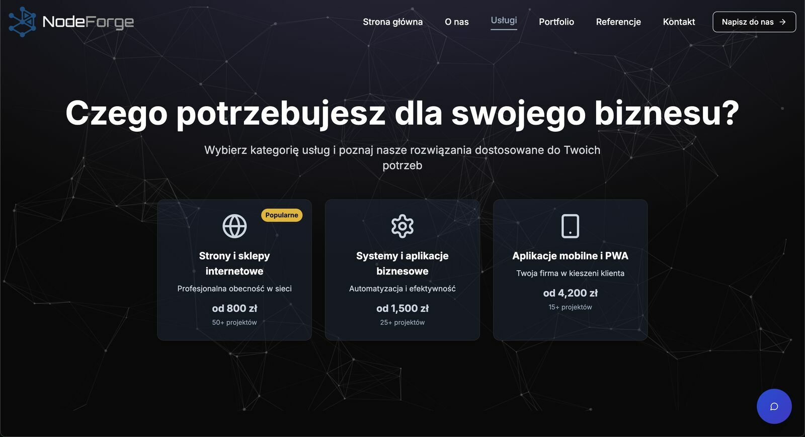 NodeForge to polska firma technologiczna specjalizująca się w tworzeniu bezpiecznych i funkcjonalnych stron internetowych dla lokalnych przedsiębiorstw.