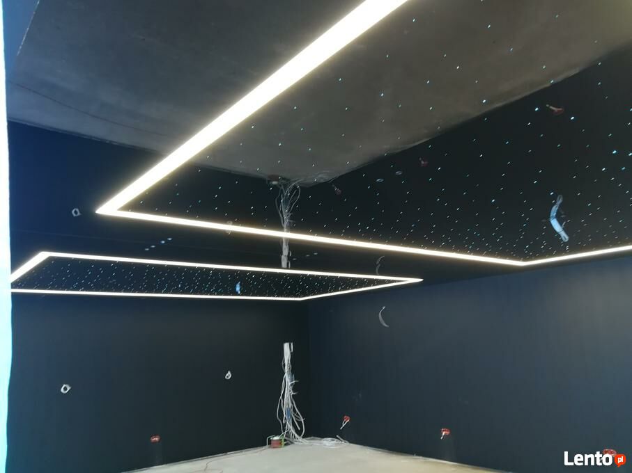 Montaż sufitów napinanych jest czysty i bardzo szybki nawet w jeden dzień! Oferujemy pełny zakres sufitów: wielopoziomowe, lustrzane, gwieździste niebo, LED, matowe, z nadrukiem oraz rzeźbione.