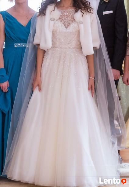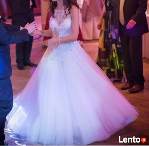 Suknia ślubna JUSTIN ALEXANDER Signature 9795 Po drogiej pralni ( założona jeden raz na własny ślub ) w idealnym stanie jako nowa Zapraszam do obejrzenia w Warszawie model 9795 w kolorze Ivory. Rozmiar sukni to jest 6us idzie na s i malutkie m na wzrost 176 cm + 8 cm obcas, co daje możliwość skrócić sukienkę. Sukienka jest bez trenu, stwierdziłam że to lepiej wygląda i nie przeszkadza w tańcu. Sukienka ma wszyte push-upy. Suknia była kupiona w Warszawie, w salonie White .Jej cena to 9400zl . Posiadam certyfikat autentyczności, dowód zakupu,pokrowiec. Sukienka jest bardzo ładna , klasyczna , piękna . Wygląda bardzo drogo i robi duże wrażenie . ma wycięte plecy oraz efektowny dekolt. sukienka pięknie wiruje w tańcu , Jest lekka i przyjemna. Uszytaz najwyższej jakości materiału , oraz ręcznie ozdobiona kryształkami Swarowskiego .