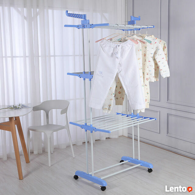 NOWA POJEMNA SUSZARKA NA PRANIE!W ofercie na sprzedaż fabrycznie nowa suszarka na pranie. Pionowa, 3 poziomowa suszarka wolnostojąca na pranie. Dzięki kółkom jest bardzo mobilna możemy ją w sposób łatwy oraz szybki przemieścić z jednego miejsca na drugie, dodatkowo koła posiadają blokadę, a więc mamy pewność, że suszarka będzie stabilna i nie przemieści się podczas podmuchu wiatru czy przeciągu. Suszarka jest składana, a więc gdy nie jest nam potrzebna to zajmuje niewiele miejsca. Świetnie nada się w pomieszczeniach o ograniczonej przestrzeni. Idealna do łazienek, na zewnątrz, a nawet balkonów. Suszarka na pranie wykonana jest z wysokiej jakości materiałów, co zapewnia jej stabilność. Suszarka pomieści bardzo dużo odzieży, dzięki 6 składanym ramionom na odzież, jednej dolnej półce na buty oraz 2 ramionom na wieszaki z ubraniami, które pomieszczą ich aż 14.