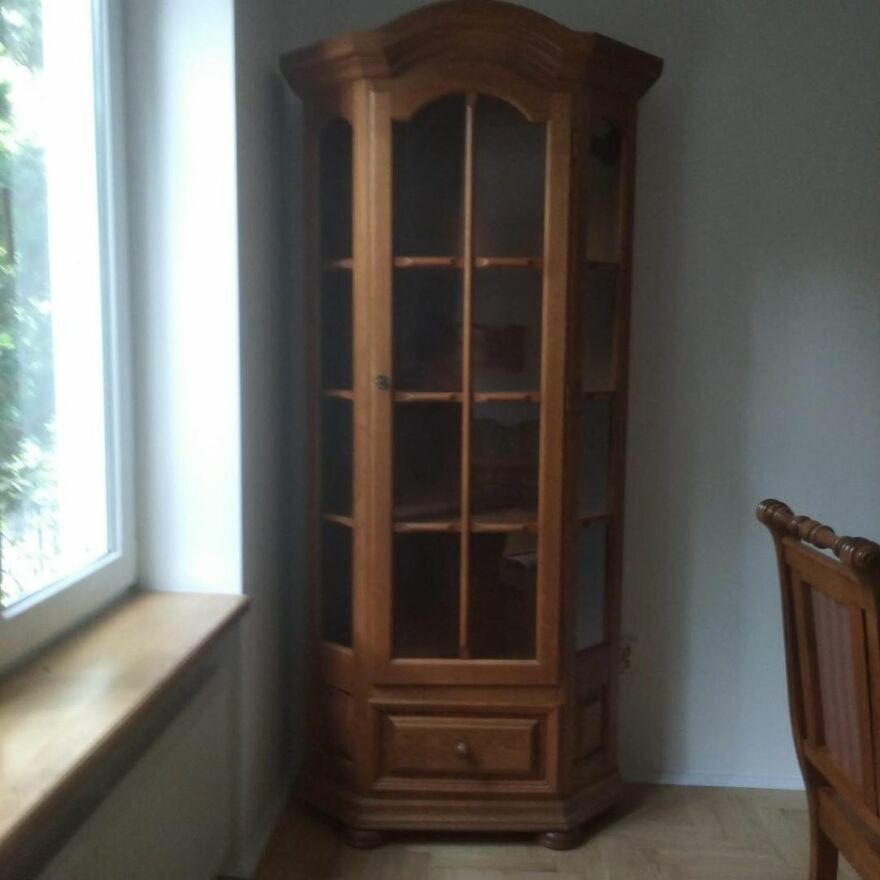 Elegancka witryna swarzedzka debowa. Wymiary: wys 196 cm x szer 77cm x gl 32cmOdbior osobisty Warszawa Wilanow.