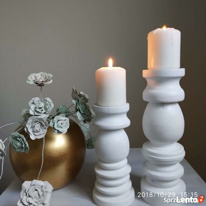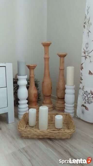 Witam. Oferuję do sprzedania dekoracje ręcznie robione które mają niepowtarzalny styl i na pewno znajdą miejsce w twoim domu by podkreślić unikalny design i podgrzać atmosferę zimnych wieczorów. Drewniane świeczniki,toczone ręcznie czekają aby rozświetlić twój dom,ogród,taras...Malowane bezzapachową farbą,nie toksyczne(farba wodna)pobielane,przecierane, jak również w kolorze naturalnym,na wysoki połysk i matowe. Polecam i zapraszam do kontaktu tel Cena ostateczna zależy od wielkości i kształtu świeczników Niema Twojego świecznika? Dzwoń a na pewno go zrobię.. Oferta nie obejmuje świec i dekoracji przedstawionych na zdjęciach. Więcej info. telefonicznie 692 - pokaż numer telefonu -Sprawdź zainteresowanie tym ogłoszeniem