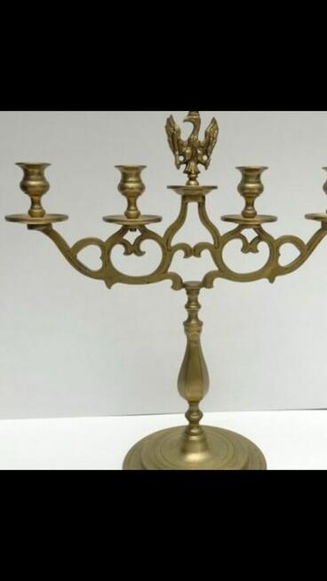 Witam serdecznie sprzedam piękny stary unikatowy świecznik pięcioramienny wykonany z mosiądzu stan bardzo dobry wys ok 45 cm