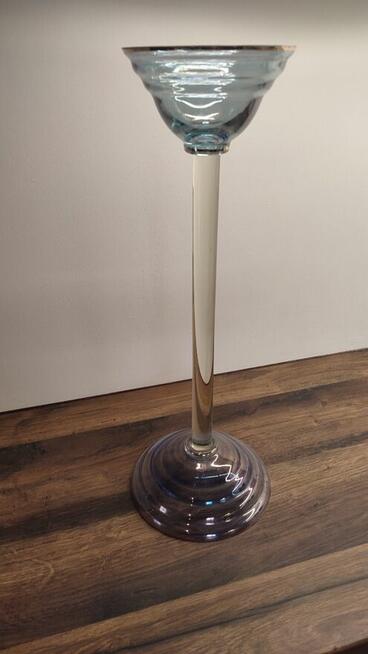 Świecznik dwustronny szklany Vintage Ciekawy i niespotykany. wysokość - 51cm średnica podstawy 1 - ...