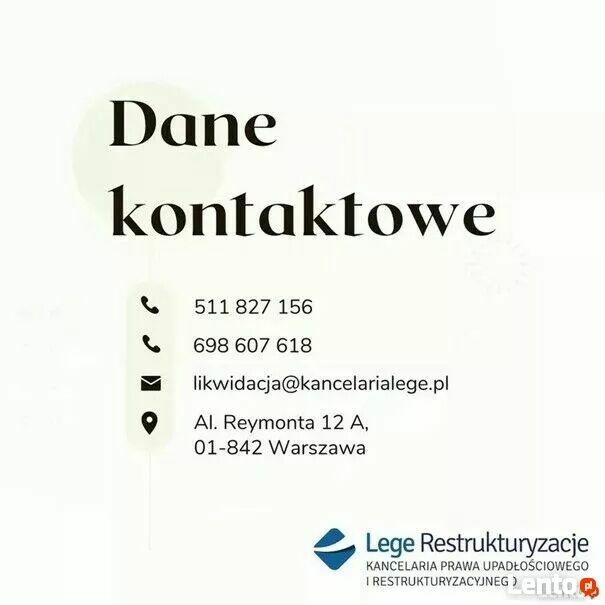 Wycenę należności oraz regulamin konkursu udostępnia kancelaria syndyka, po uprzednim kontakcie mailowym: likwidacja(małpa)kancelarialege.pl