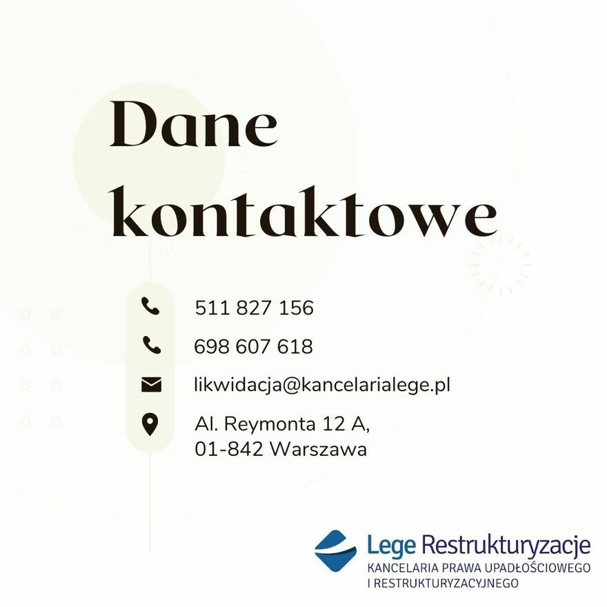 Wszelkich informacji udziela kancelaria syndyka pod adresem e-mail: likwidacja(małpa)kancelarialege.pl