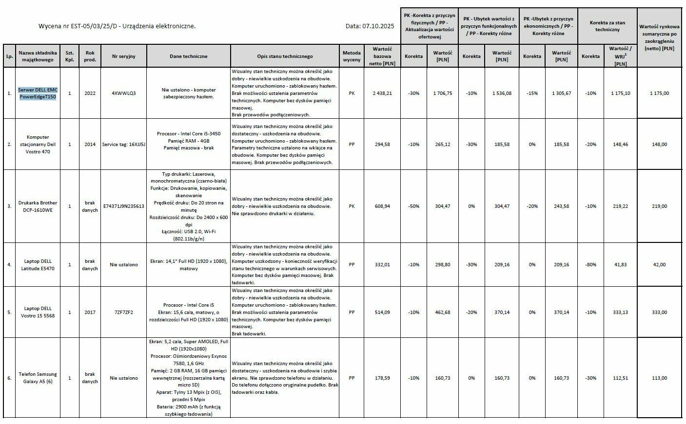 Poszczególne ruchomości zostały szczegółowo opisane w załączniku.