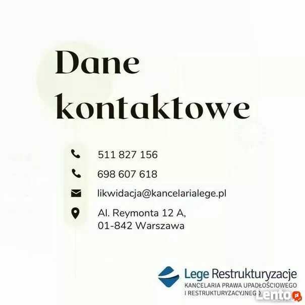 Oferty nabycia należy przesyłać na adres e-mail: likwidacja(małpa)kancelarialege.pl