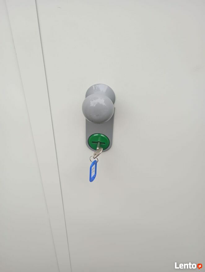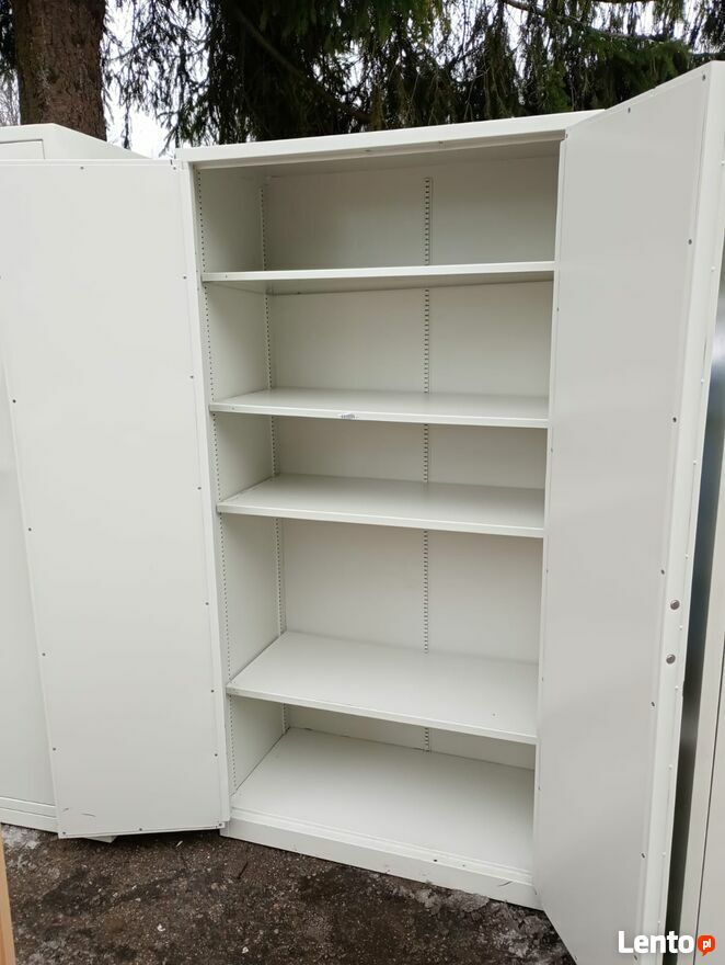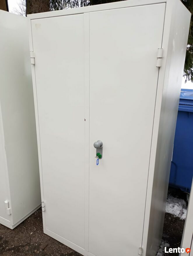 Szafa dwudrzwiowa, która w całości wykonana jest z blachy stalowej.