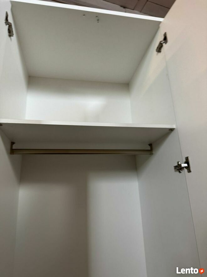 W ofercie szafa ubraniowa kolor biały.Wysoka 228 cm, szerokość 80 cm, głębokość 43 cm.
