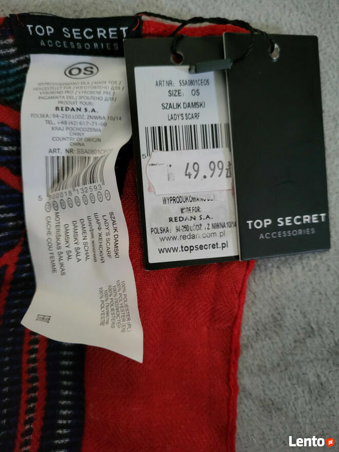 Szalik Top Secret 175x88cm 100% poliester NOWYOdbiór osobisty Warszawa Ochota tel. 733#511#788