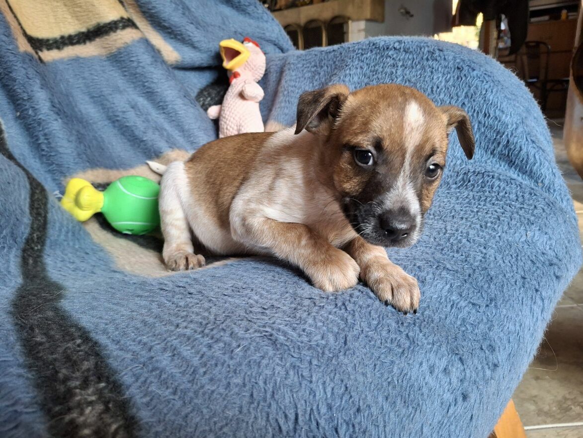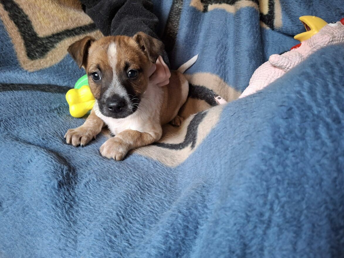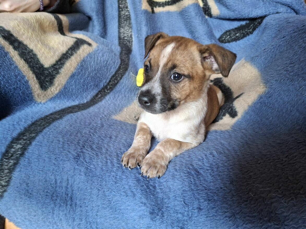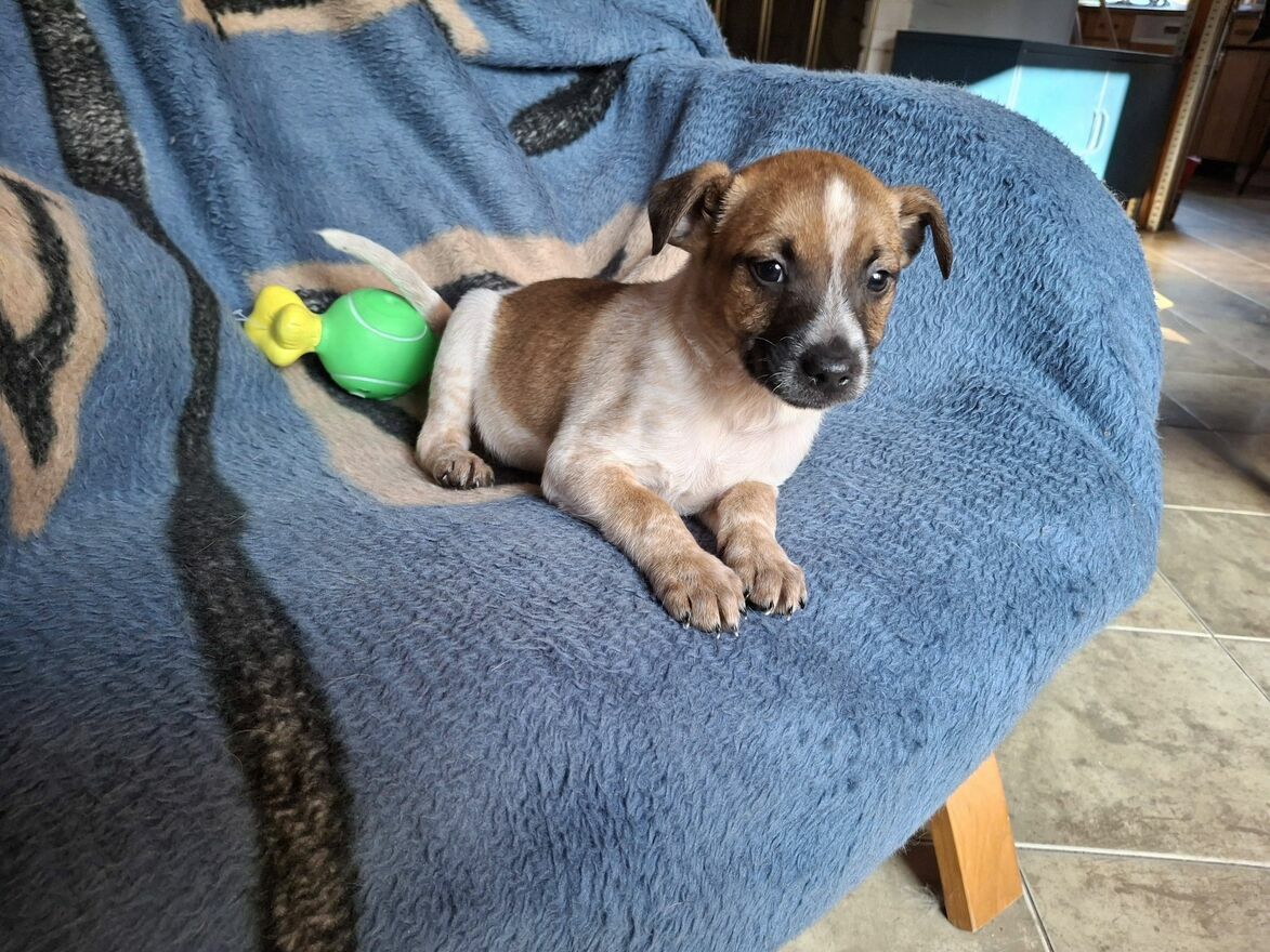 Drugi z czwórki małych szczeniaków, to Rumcajs. Mały rozbójnik, chętny do psot i zabawy.Podobnie jak Adelka Rumcajs będzie gotowy do adopcji po drugim szczepieniu.