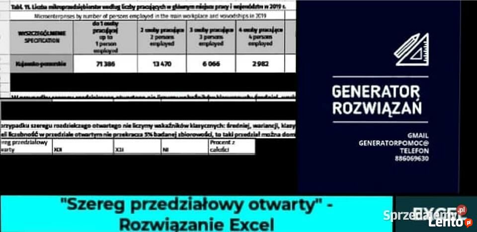 "Szereg przedziałowy otwarty, Miary pozycyjne" - Rozwiązanie zadania Excel. poziom - Studiaby: GENERATOR ROZWIĄZAŃ