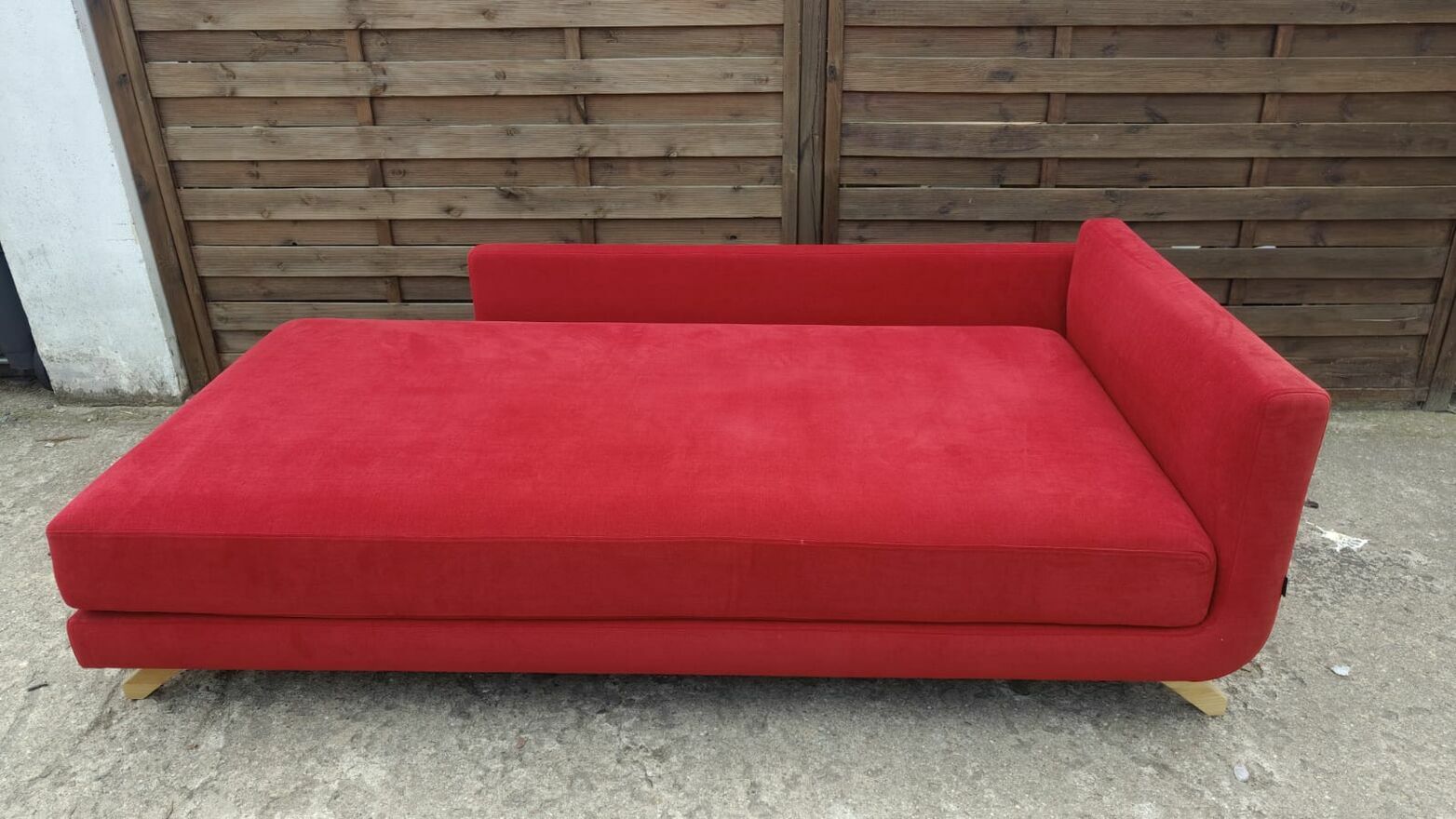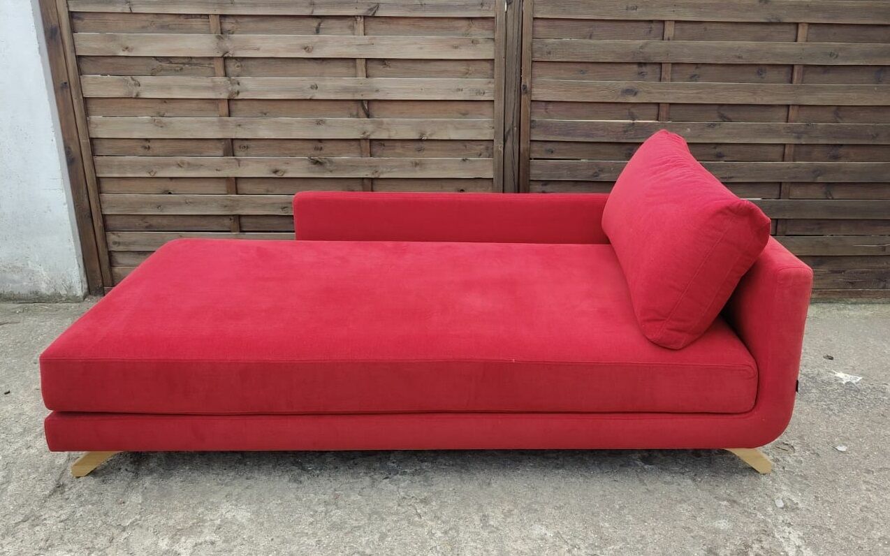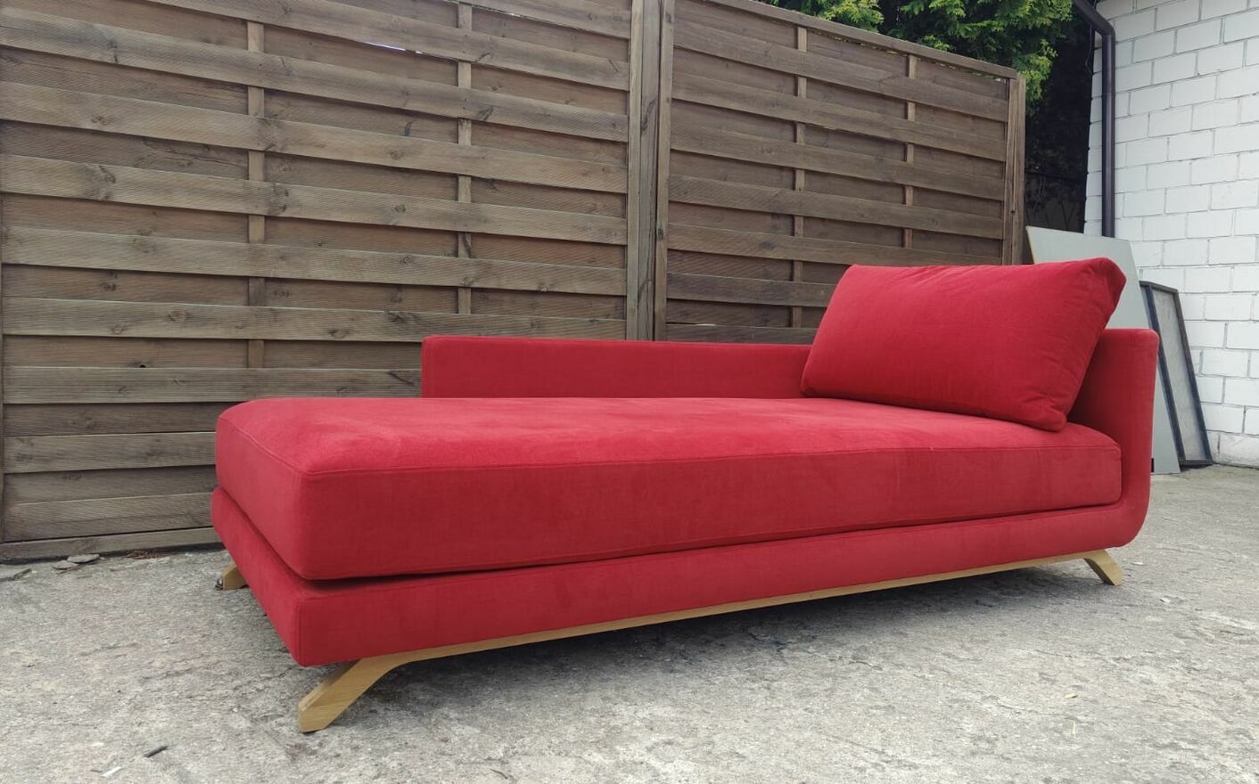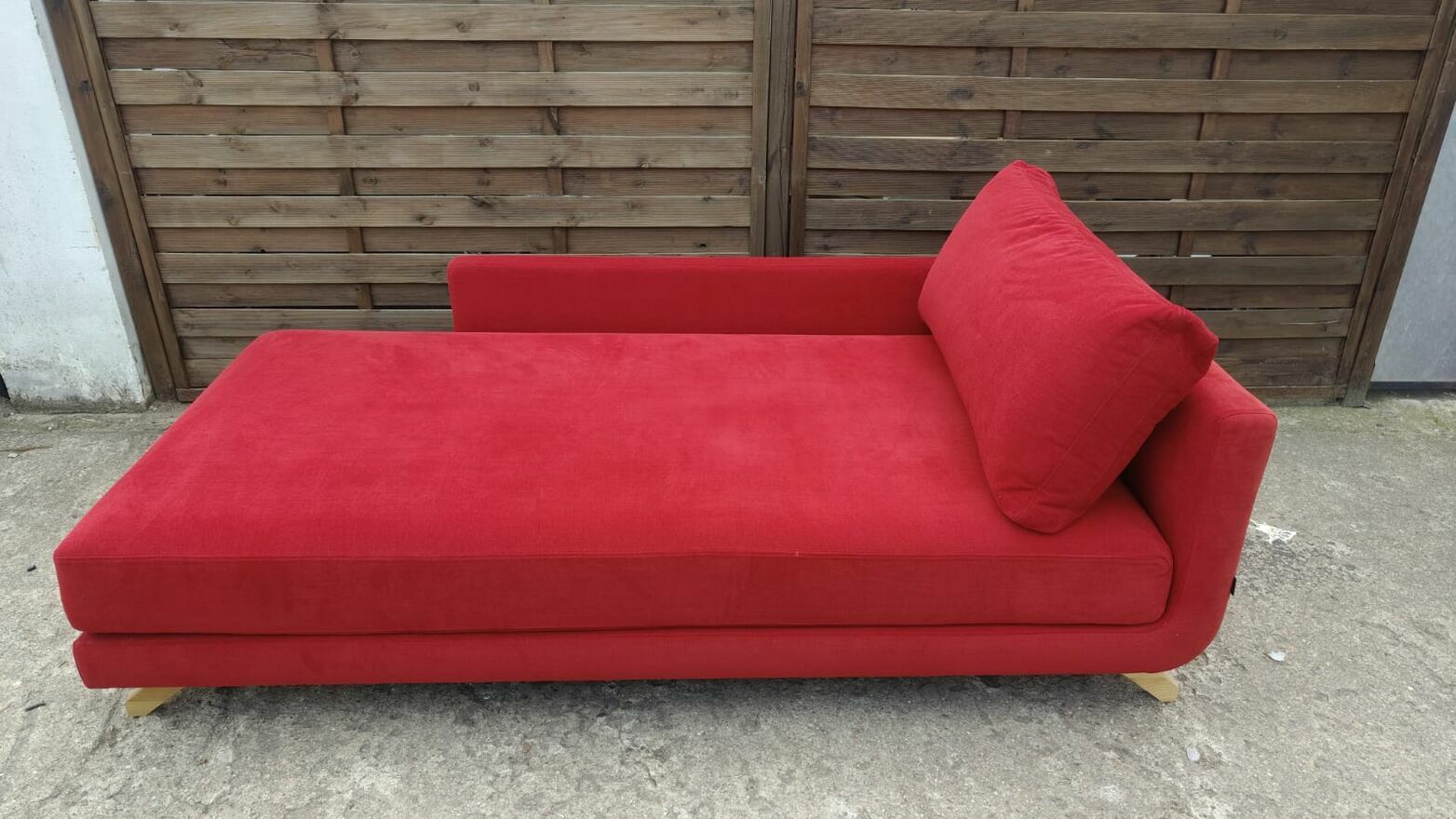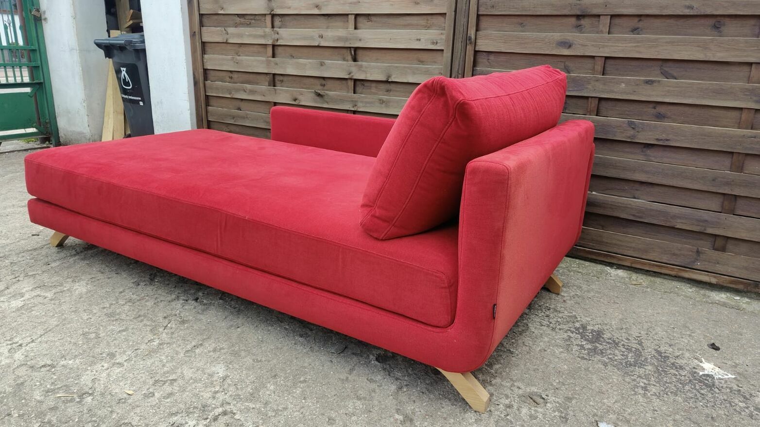 WYPRZEDAŻSprzedam piękny, elegancki szezlong Comforty Pesto Piu. Kolor czerwony. Mebel idealny do salonu lub pomieszczeń użyteczności publicznej. Wykonany na sprężynach bonellowych. Nóżki drewniane.