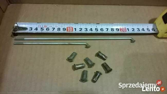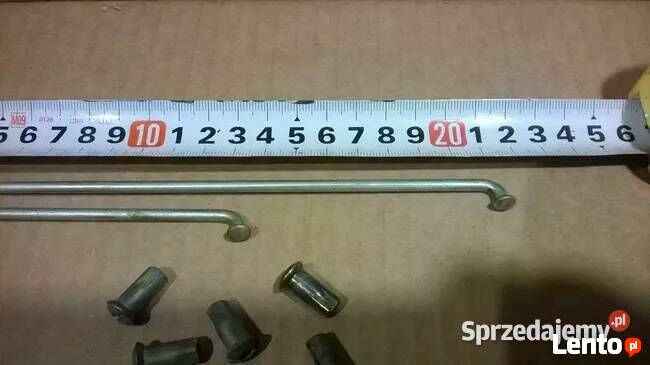 Do sprzedania szprychy oryginalne, z tamtych lat, wojskowe ze starych zapasów z magazynów wojskowych, zatem i jakość oryginalna a nie podróbka. Powinny pasować do wymienionych w tytule motocykli, oraz podobnych jak BMW R12, ale zawsze należy to sprawdzić, dlatego na zdjęciu jest miarka. To już ostatnie takie okazy, wkrótce będą tylko w muzeum. Szprychy są oryginalnie w ocynku. Są dwie długości: długa ok.210mm, a krótka ok. 130mm, oczywiście na końcach zagięte, średnica szprychy 4mm, natomiast walcowany gwint o średnicy 4,5mm. Szprychy nie są cieniowane. Nyple do szprych są mosiężne. Dla jasności załączam zdjęcie z miarką. Sprzedaję na sztuki (kpl z nyplem) bez różnicy długa czy krótka. Cena za sztukę. Wystawiam szprychy znajomego, nie posiadającego konta, czyszczącego garaż. Możliwa wysyłka. Nie wystawiam faktur.warmarek