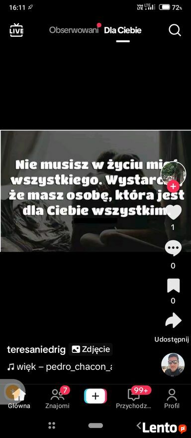 Myślę że nic mi nie brakuje jeśli chodzi o to co osiągnąłem bo nic nie dostałem Mam stabilizację dobrą pracę Wszystko musiałem sam zdobyc Mam dobry charakter jestem po 50 tce średniego wzrostu Szukam kobiety dla której będę tym jedynym myślę że wyglądam przeciętnie Napewno księciem nie jestem Ale mogę być partnerem Dla nie właściwej kobiety możesz robić wszystko a i tak będzie źle Dlw mądrej nie musisz robić nic wystarczy że będziesz dbał o nią i będziesz ideałem Dlatego szukam tylko..,.. nie pustakaSprawdź zainteresowanie tym ogłoszeniem