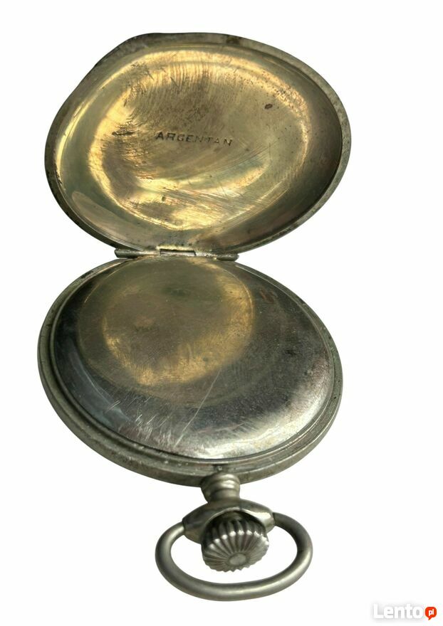 na wew. stronie pokrywy czytelny napis ARGENTAL ( nowe srebro) co wskazuje ze zegarek jest wykonany ze stopu miedzi niklu i cyny