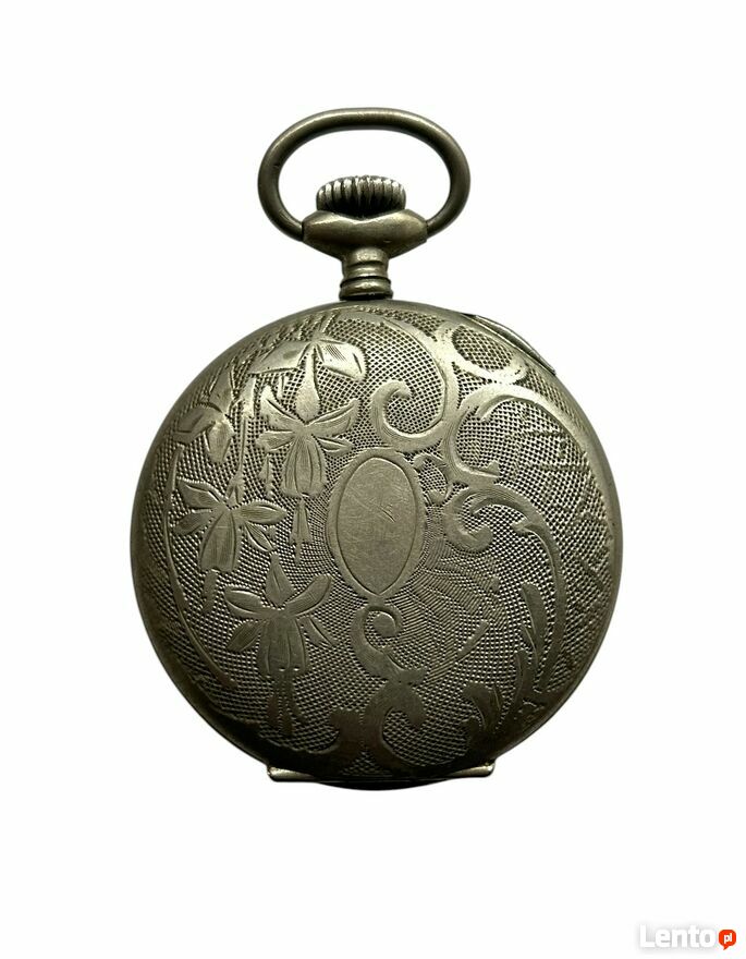 Szwajcarski zegarek kieszonkowy Juvenia, sprawnykoperta ozdobnie grawerowana motywem kwiatowym