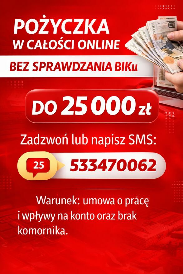 Zapraszam do kontaktu poprzez lento lub wyślij SMS o treści, POŻYCZKA BEZ BIK