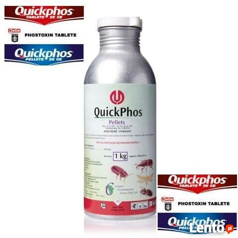 Sprzedaż w sklepie Sklep Owad pod adresem http://www.sklepowad.plQUICKPHOS jest środkiem owadobójczym i gryzoniobójczym w formie tabletek emitujących gaz drogą reakcji chemicznej, o działaniu gazowym przeznaczonym do fumigacji /dezynsekcji ziarna zbóż (pszenica, jęczmień, żyto, pszenżyto, owies, proso, sorgo) i nasion grochu oraz materiału siewnego w magazynach i przechowalniach, w komorach elewatorów i w silosach. Środek zwalcza jaja, larwy i formy dorosłe następujących szkodników magazynowych: strąkowca grochowego, wołka zbożowego, omacnicy spichrzanki, mklika mącznego, wołka ryżowego, spichrzela surinamskiego, rozpłaszczyka rdzawego, trojszyka gryzącego, trojszyka ulca. Tabletki Quickphos Tablets 56 GE wykazują bardzo dobry poziom zwalczania populacji karczownika oraz kreta.