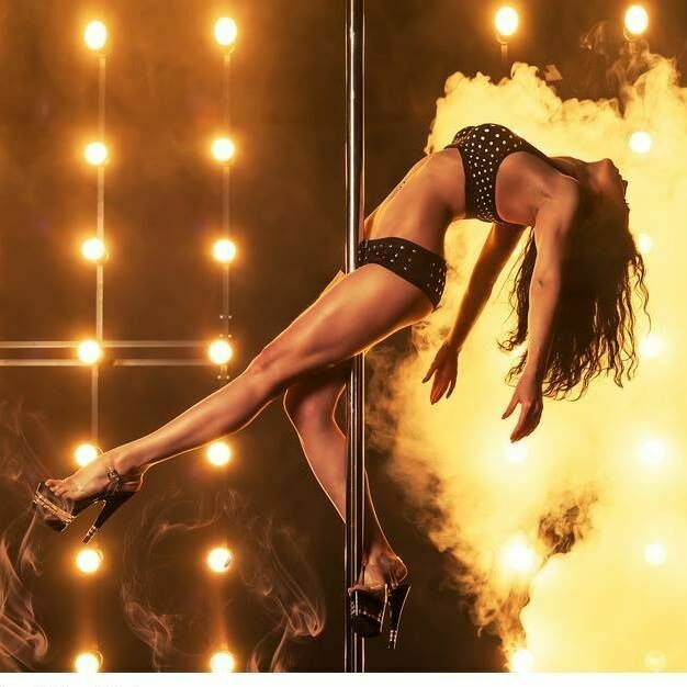 Tancerki występują na scenie prezentując tańce pole dance, rozmawiają z klientami.