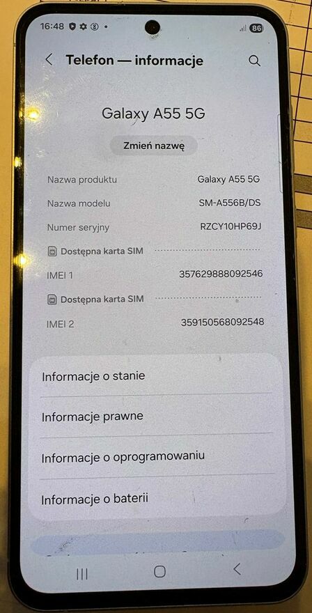AN Syndyk masy upadłości sprzeda telefon komórkowy Samsung Galaxy A55 5G za cenę minimalną 360,00 zł. Proszę o składanie ofert cenowych w wiadomości e-mail na adres @Sprawdź zainteresowanie tym ogłoszeniem