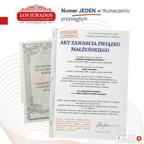 Potrzebujesz tłumaczenia przysięgłego na polski, angielski, niemiecki, hiszpański lub rosyjski? Los Jurados zapewnia szybkie i certyfikowane tłumaczenia dokumentów osobistych i firmowych. Przekłady wykonują doświadczeni tłumacze przysięgli, gwarantując pełną zgodność z wymaganiami urzędów. Możliwość realizacji ekspresowej!️ Zamów online: www.losjurados.pl