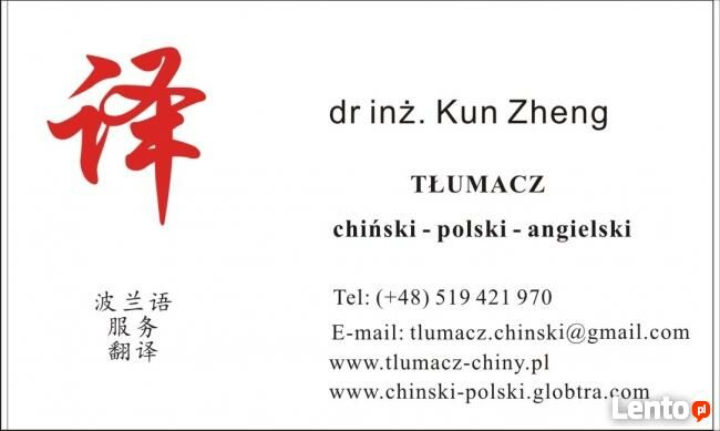 Tłumaczenia i Doradztwo Biznesowe dr inż. Kun Zheng