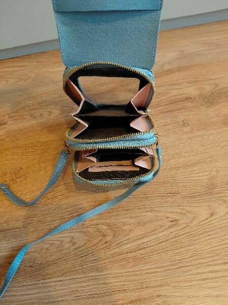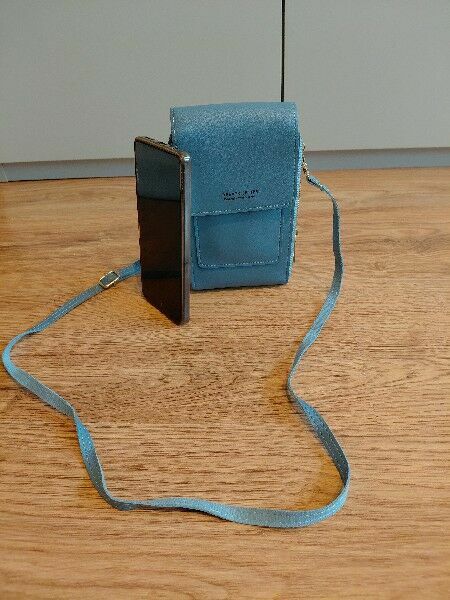 Sprzedam praktyczną torebkę na telefon w kolorze turkusowym.Idealna na spacery, zakupy, wyjazdy, koncerty, wtedy, gdy chcesz mieć przy sobie tylko telefon, dokumenty i kilka drobiazgów.