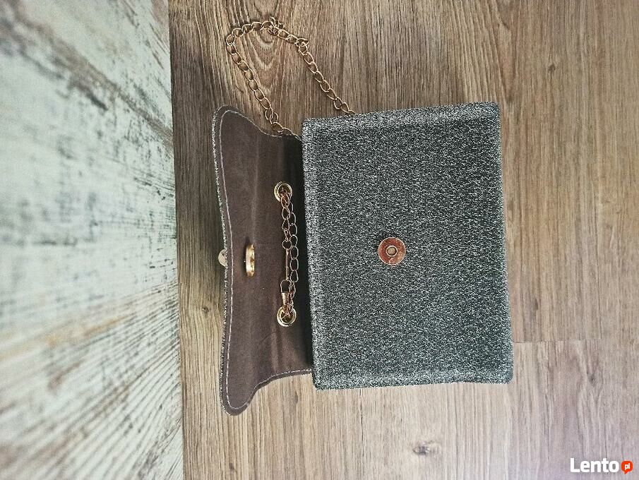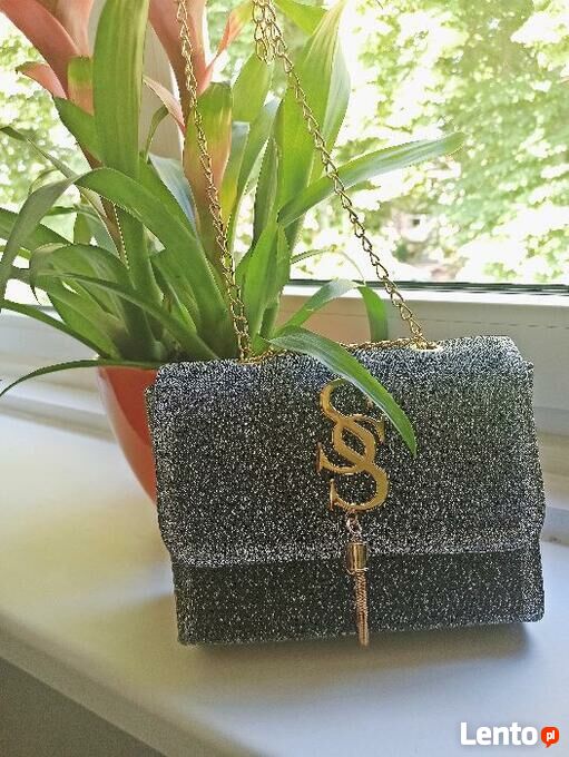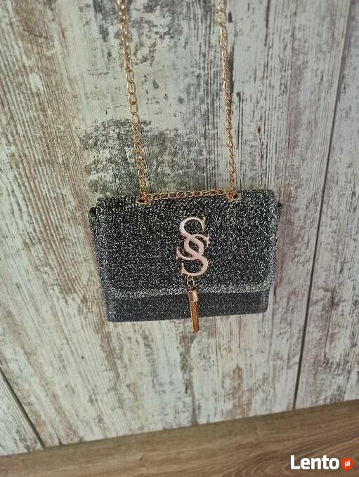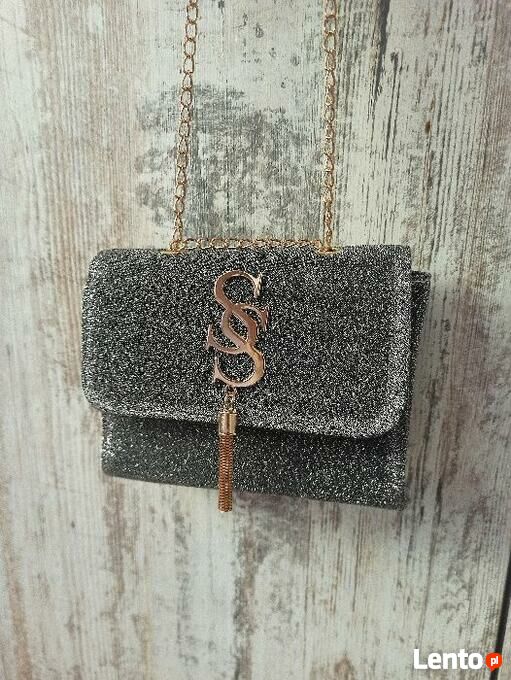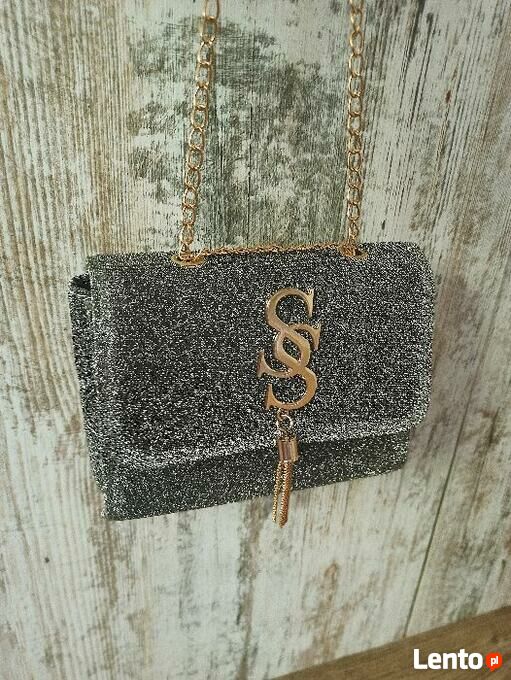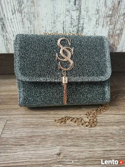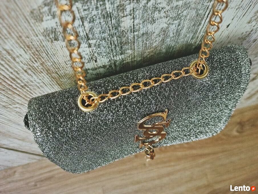 SUPER POMYSŁ NA ŚWIĘTA, SYLWESTRA !Torebka damska listonoszka na złotym łańcuszku. Błyszcząca, niezastąpiona jako dodatek, który robi wrażenie, a jej poręczność i pojemność sprawi, że będziesz miała pod ręką wszystko co najważniejsze podczas uroczystej kolacji, spotkania biznesowego lub wtedy, gdy zechcesz poczuć się wyjątkowo! Pięknie mieniący się materiał pokryty brokatem czyni ją idealnym akcentem do wieczorowych kreacji. Dodatkową ozdobą jest złoty chwost.