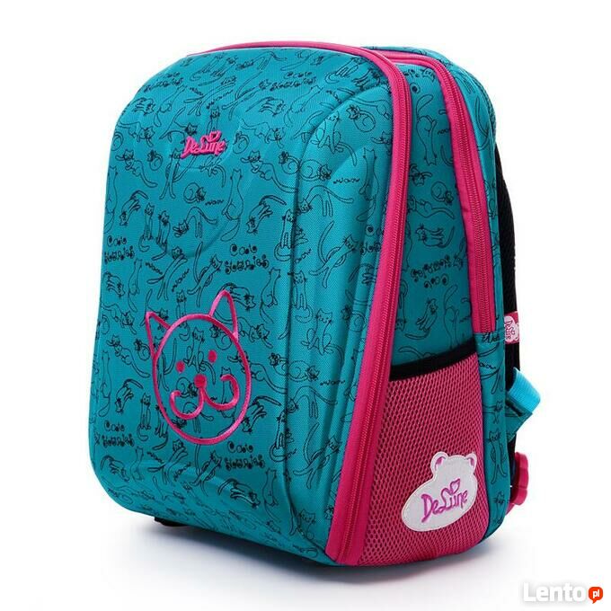 Tym razem przedstawiamy wygodny tornister z wyhaftowaną mordką kiciusia i nadrukowanymi kotkami rozrabiakami. Tornister posiada dwie komory. W pierwszej pojemnej komorze znajdują się przegródki pomagające utrzymać w porządku szkolne akcesoria, zeszyty, książki, piórnik,kredki itd. Mamy XXI wiek, nie może zabraknąć miejsca na tablet- druga komora jest właśnie takim miejscem. Nie zapomnieliśmy o oddychających plecach, miękkich szelkach, pasie piersiowym stabilizującym tornister na ramionkach, odblaskach dla bezpieczeństwa i porządnych suwakach.