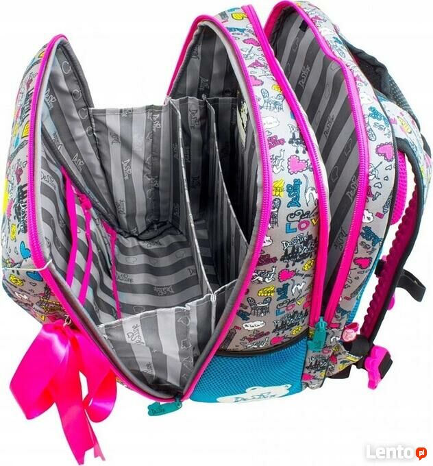 Jest on większy i bardzo pojemny. Przestrzeń tornistra/plecaka została zaplanowana wg systemu organizacji przedmiotów «Open access», co ułatwia ułożyć szkolne akcesoria ucznia.