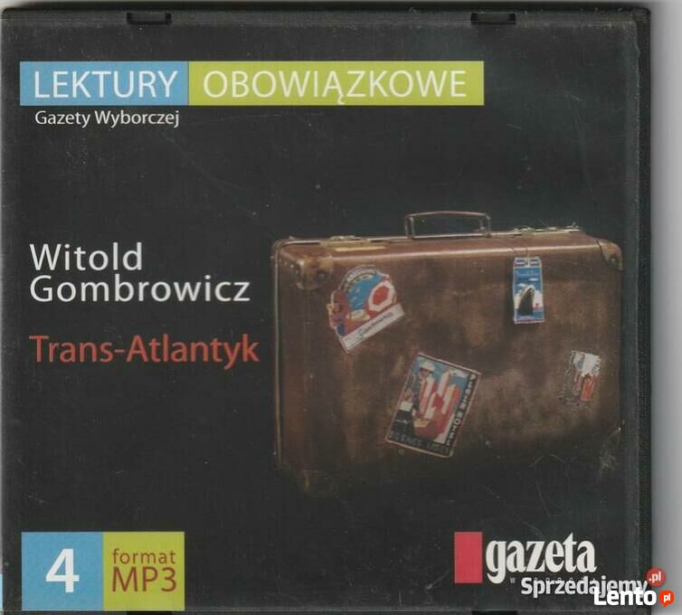 Trans-Atlantyk Gombrowicz MP3 Lektury obowiązkowe Jedyny w swoim rodzaju utwór-wyzwanie, utwór-prowokacja, kapitalna rozprawa Gombrowicza z polskością, z podtrzymywanymi przez tradycję stereotypami narodowymi. Genialny humor i cudowny język, zadziwiające wykorzystanie przez pisarza form gawędy szlacheckiej, nie milknące pytania, które w każdym pokoleniu powinniśmy sobie zadawać. Tytuł: Trans-Atlantyk Gombrowicz MP3 Stan: Używana Rok wydania: 2007 Nośnik: Audiobook mp3 Opakowanie: Oryginalne Polska wersja językowa : Oryginalny Liczba płyt w wydaniu: jedna Format: CD Karton 88 Ogłoszenie jest aktualne dopóki znajduje się na stronie . Odbiór osobisty lub wysyłkaSprawdź zainteresowanie tym ogłoszeniem