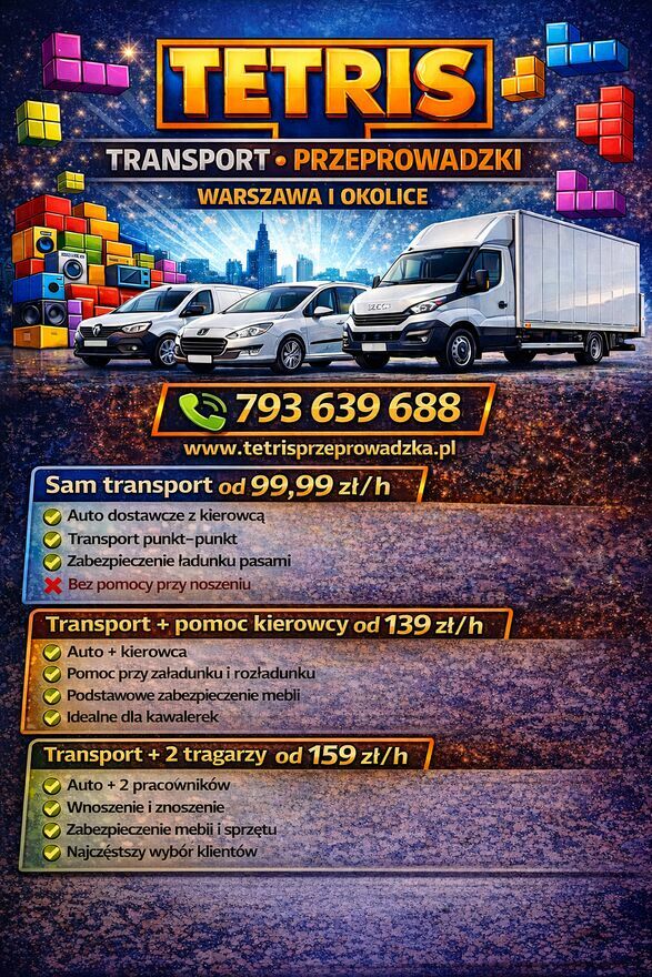 - Kategoria: Usługi / Transport / Przeprowadzki