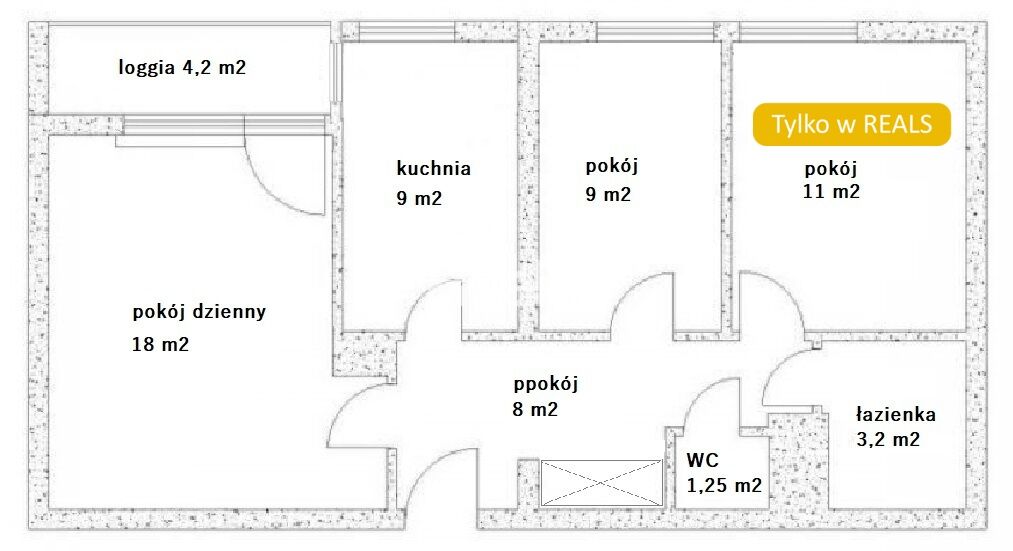 Do lokalu przynależy loggia o pow. 4,2 m2 oraz piwnica około 1,5 m2.