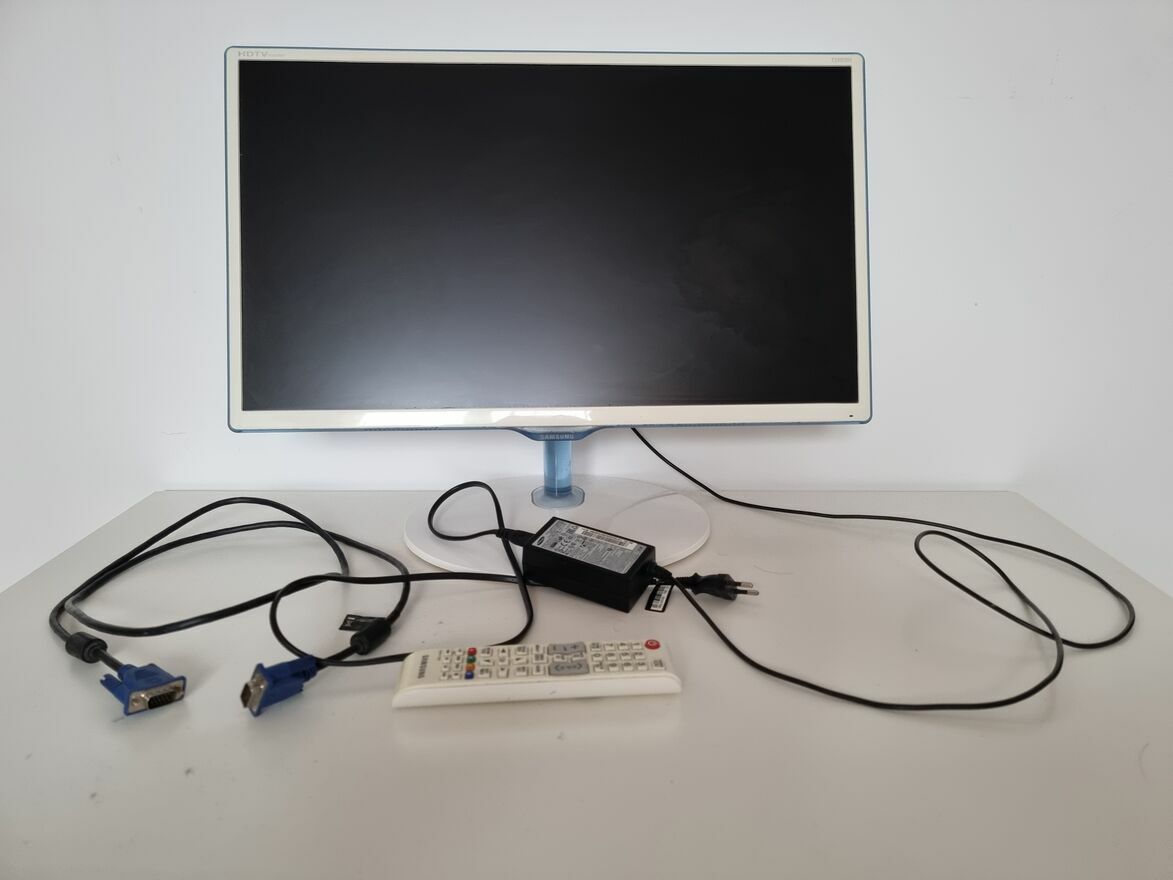 Sprzedam Samsung TV 24 Cale i monitor w jednym model T24D391EW biały Full HD USB.Monitor ma małą plamkę jak to widać na zdjęciu z menu. Cena 400 zł.