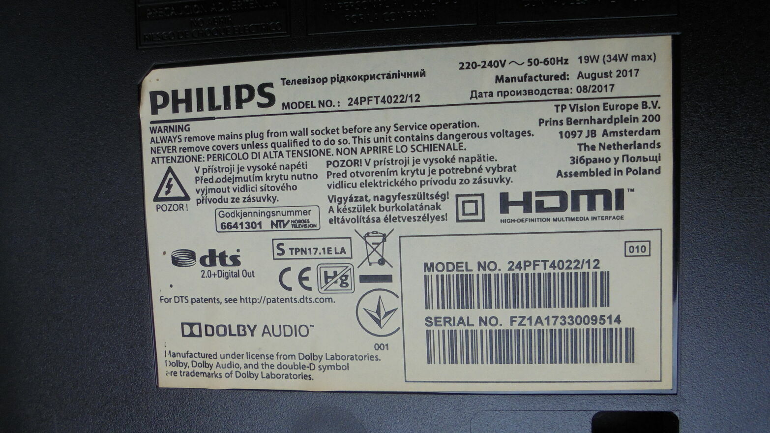 TV Philips 24 PFT 4022.12 uszkodzony zasilacz.