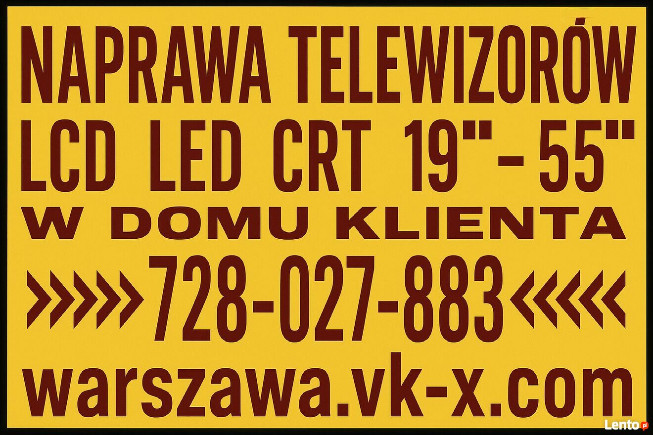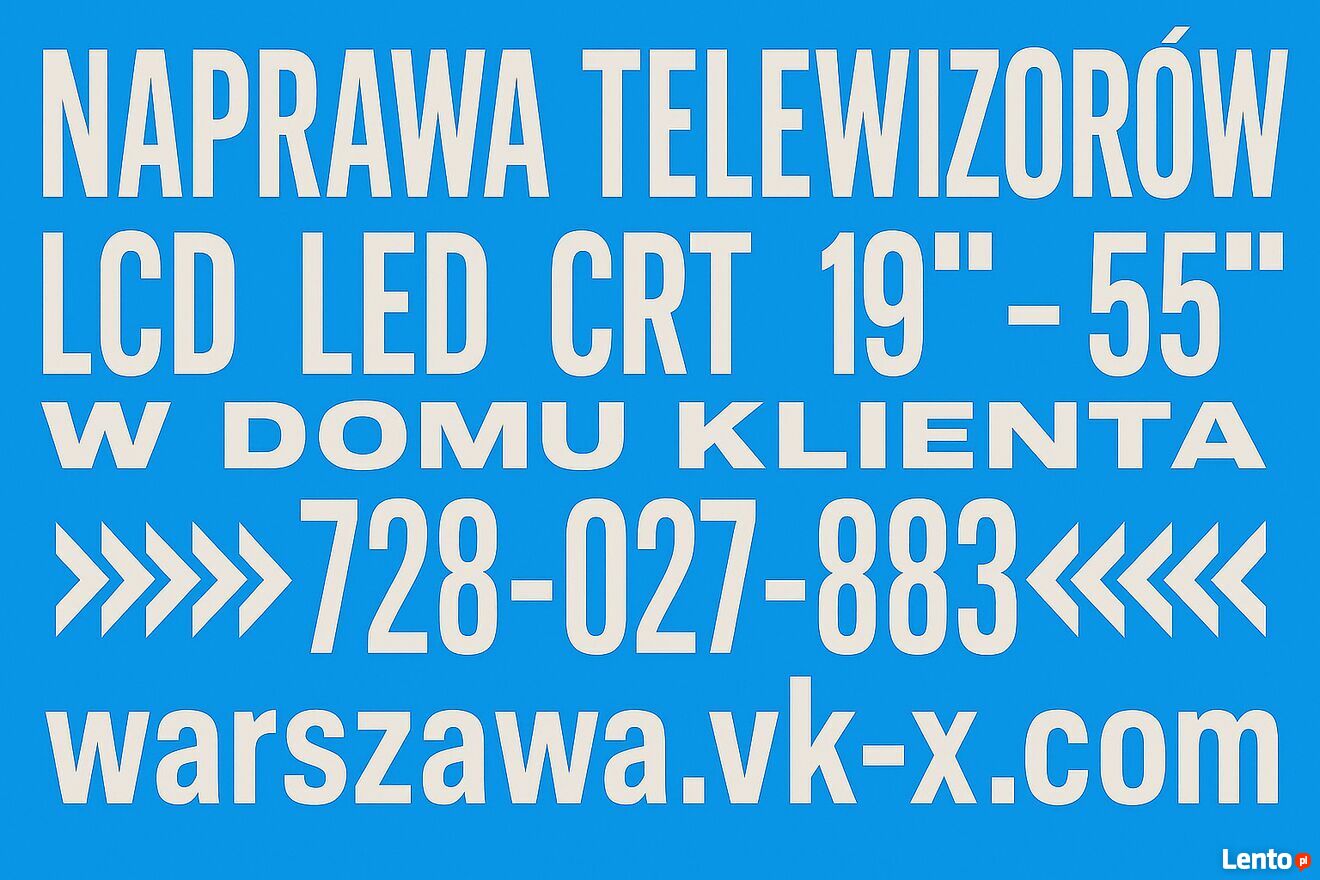Serwis naprawy telewizorów LED LCD CRT do 55 cali, pogwarancyjnych, w domu klienta, Warszawa Śródmieście.TeI: 728-O27-883