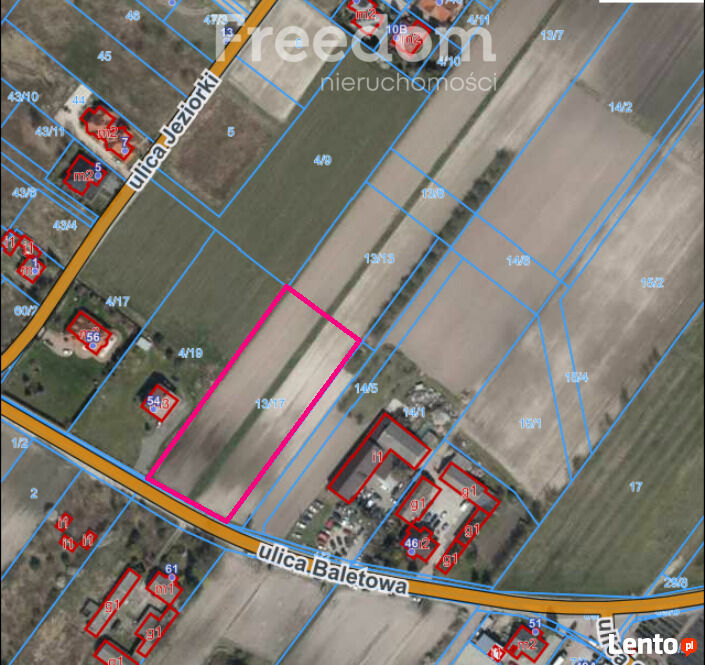 Działka nr 13/17 – 4 923 m²)Wymiary przybliżone: 44 x 175 m –