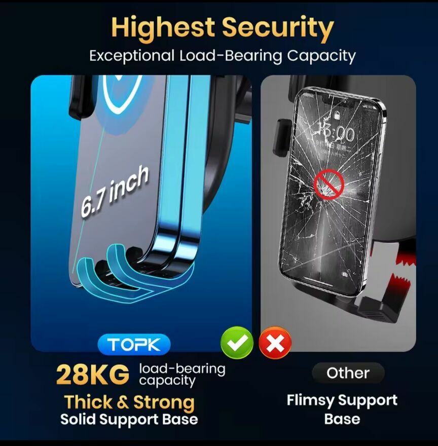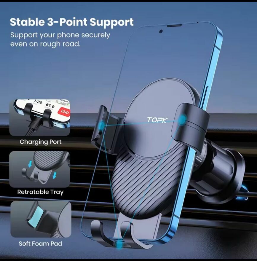 Uchwyt grawitacyjny na telefon TOPK zapewnia wygodne i bezpieczne trzymanie smartfona podczas podróży samochodem. Dzięki zastosowanej technologii grawitacyjnej, telefon może być łatwo umieszczony i wyjęty z uchwytu jednym ruchem. Solidna konstrukcja oraz antypoślizgowe materiały zapewniają stabilność i ochronę telefonu podczas jazdy.Sebastian