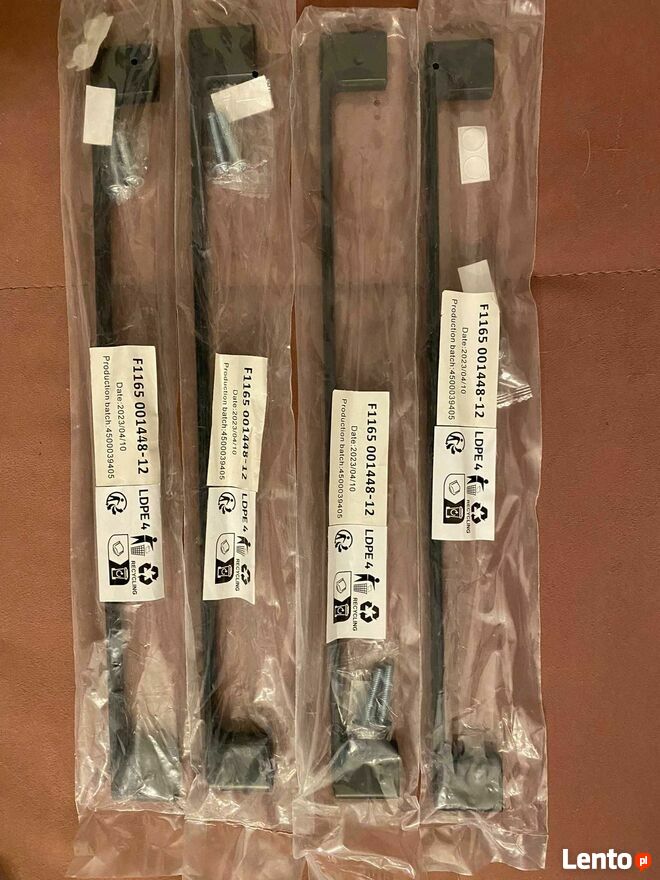 Na sprzedaż 4 uchwyty meblowe, w oryginalnym opakowaniu. Kolor czarny matowy. Długość całkowita uchwytu 34 cm.Cena 15zł/szt.