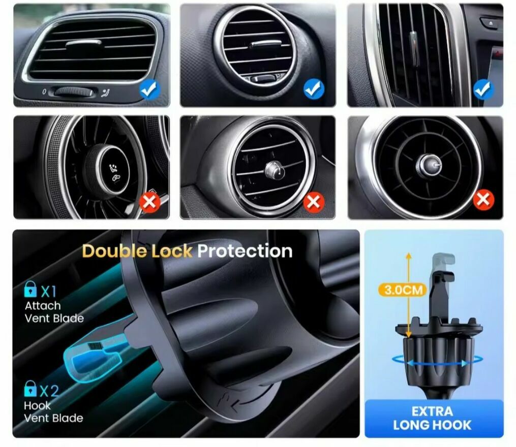 Uchwyt samochodowy na telefon – kratka nawiewu | 360° | One TouchBezpieczna jazda i wygodna obsługa telefonu