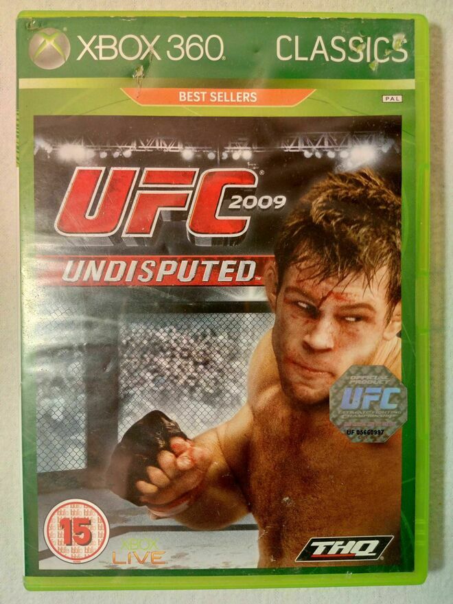 Gra UFC Undisputed 2009 na konsolę Xbox 360.Opakowanie jest pęknięte w kilku miejscach, widoczne na zdjęciu