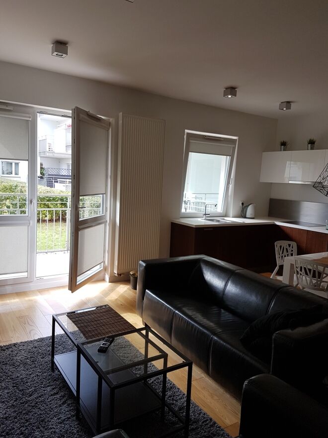 Znajduje się na parterze w 3 piętrowym budynku z 2011 roku na zamkniętym osiedlu wybudowanym przez Dom Development.
