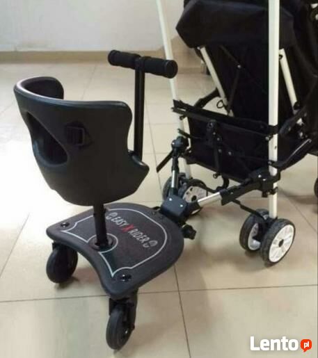 Uniwersalna Easy X Rider v2 to dostawka 2w1 może być dostawką siedzącą, jak i stojącą. Dzięki uniwersalnemu teleskopowemu stelażowi i elastycznemu mocowaniu, pasuje do wszystkich modeli wózków, zarówno parasolek jak i 2w1. Easy X Rider montuje się na pionowych belkach idących od tylnich kół wózka. Składa się: z wygodnego siedziska z 3 punktowymi pasami, z szarej miękkiej poduszki, z antypoślizgowej platformy, świecących amortyzowanych kółek, adapterów oraz paska dzięki któremu możemy podnieść całość.Przeznaczona dla dzieci od 15 miesiąca życia i ważących maksymalnie 25 kg.