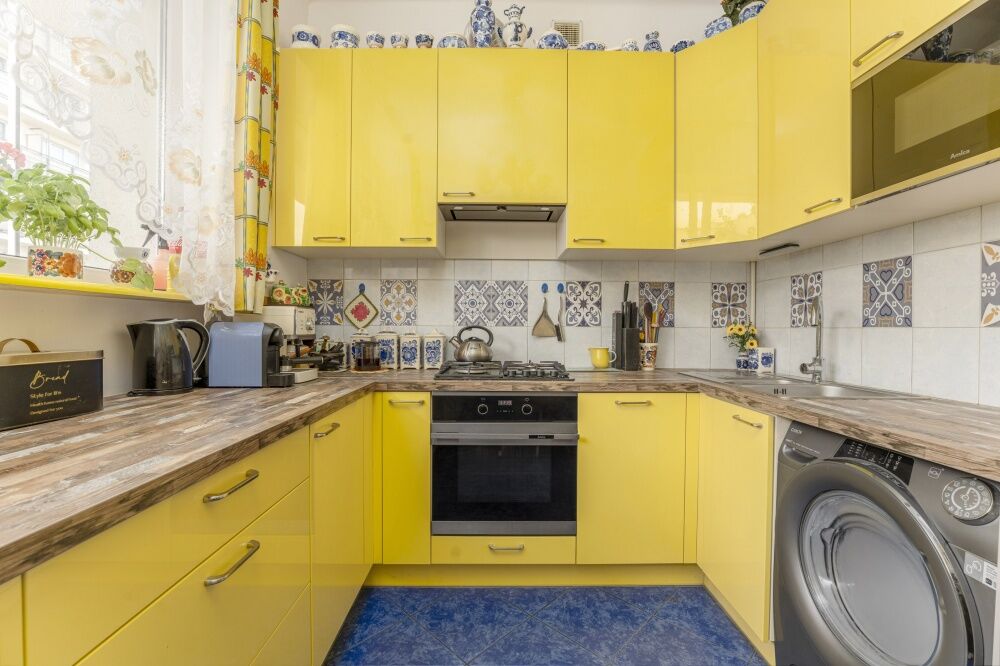 Oddzielna kuchnia (8 m²) po generalnym remoncie w 2023 roku, wyposażona w nowoczesne sprzęty: kuchnię gazową, lodówkę, zmywarkę i piekarnik,